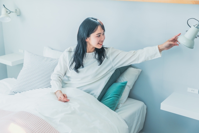 寝る前に立ち上がって照明を消す必要がなくなり、動線が自然で安全になります。