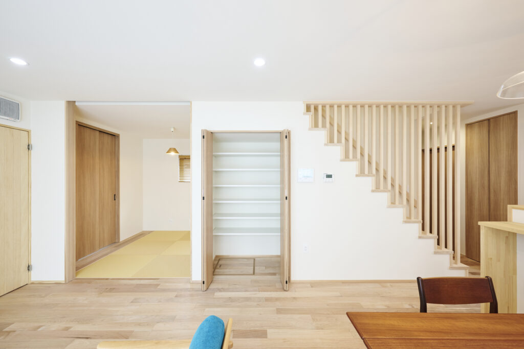 白田工務店では、間取りを考える初期段階から「どこに・何を・どれくらい収納するのか」を丁寧に整理し、暮らし方に合わせた収納計画を行っています。